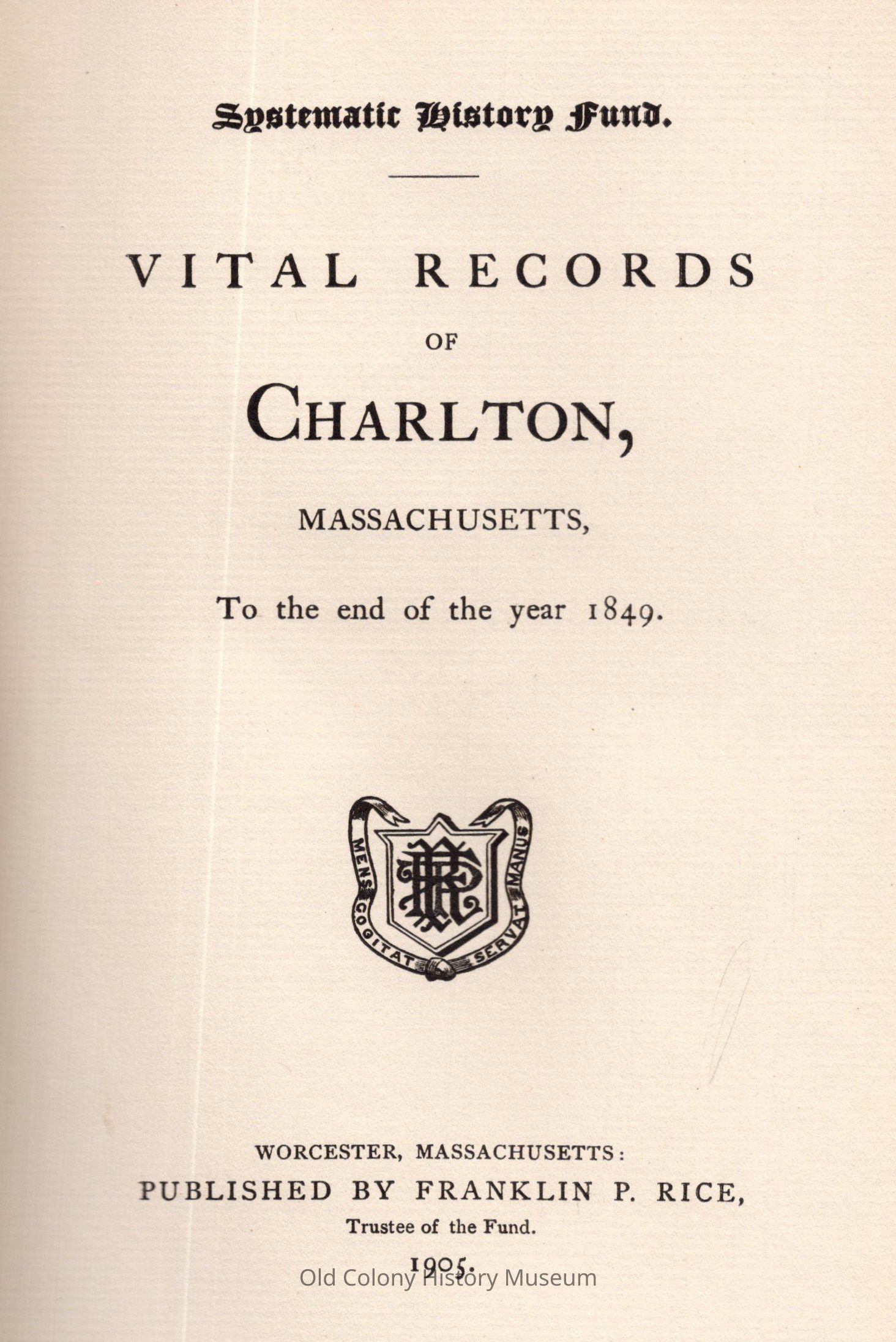 Vital Records of Charlton, Massachusetts to the End of the Year 1849.Entry/Object ID