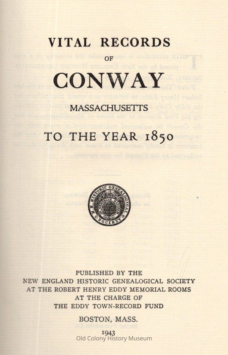 1. Registers of births, etc.--Conway, Mass.Book Details
