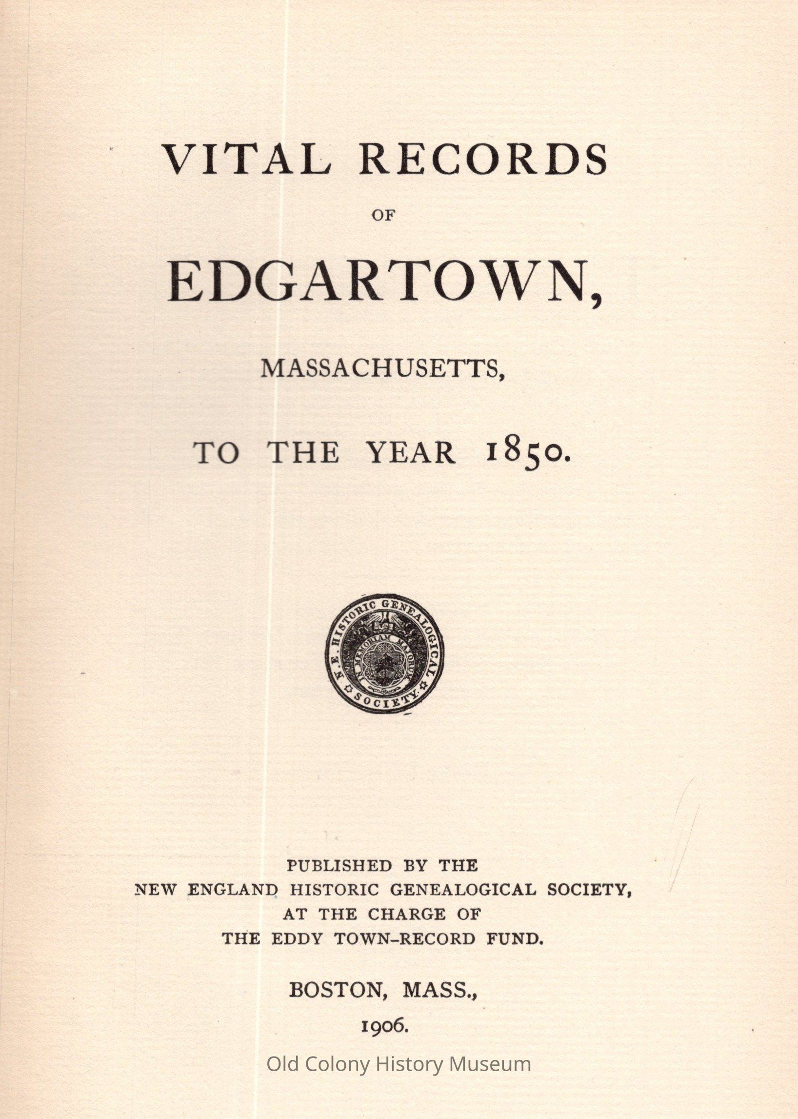 New England Historic Genealogical Society, at the charge of the Eddy town record fundPlace Published