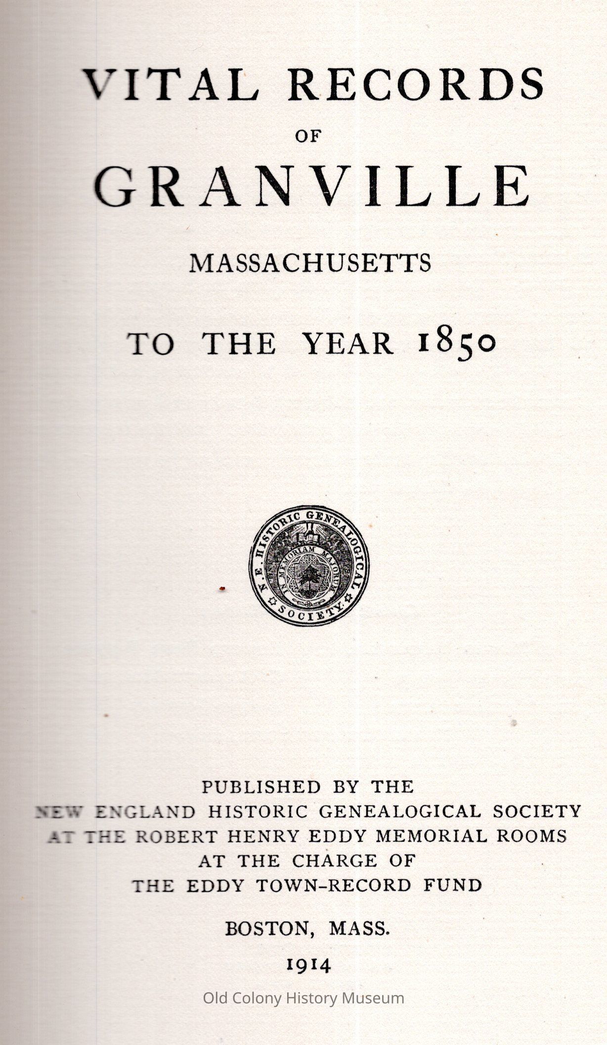 New England Historic Genealogical Society, at the charge of the Eddy town record fundPlace Published