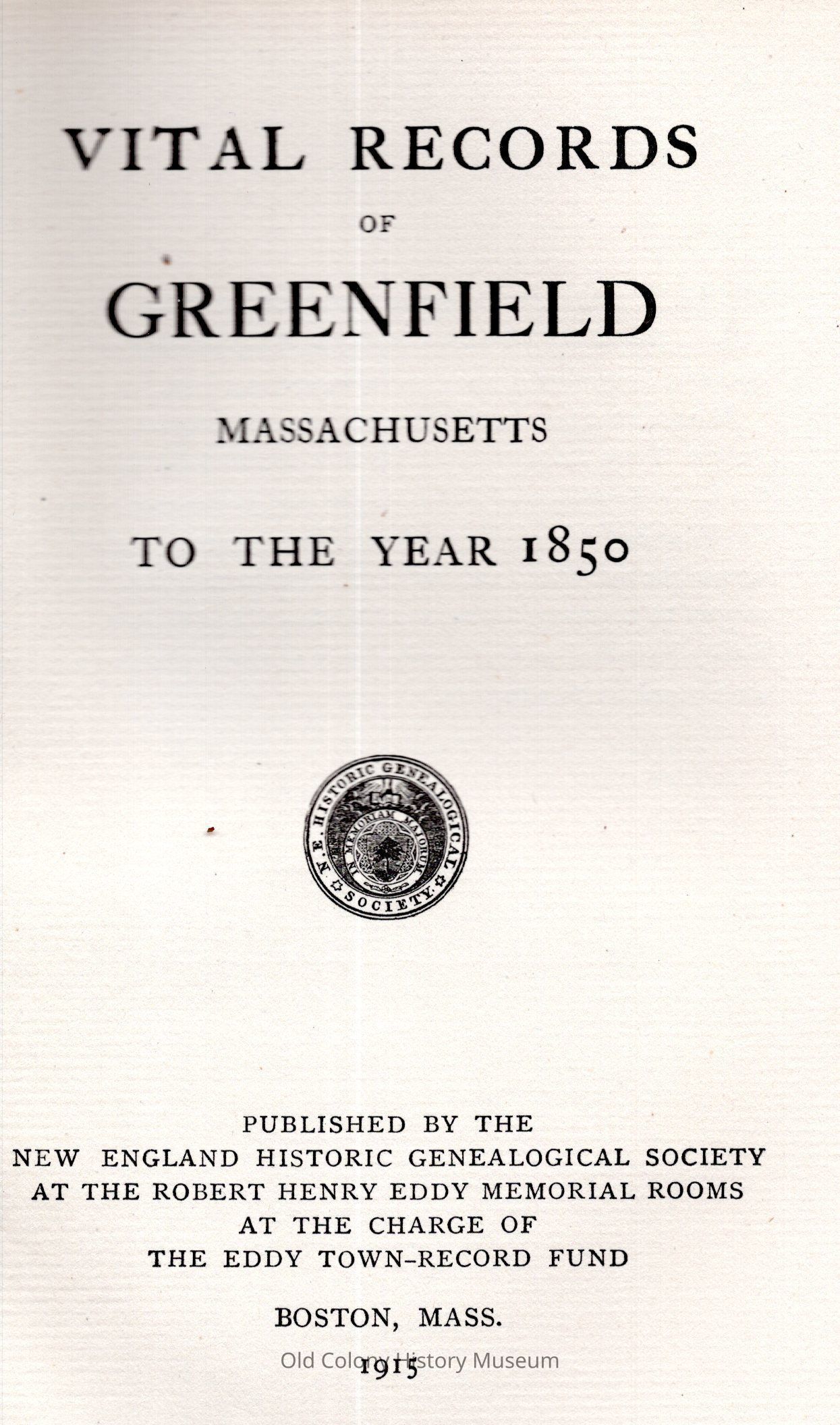 New England Historic Genealogical Society, at the charge of the Eddy town record fundPlace Published