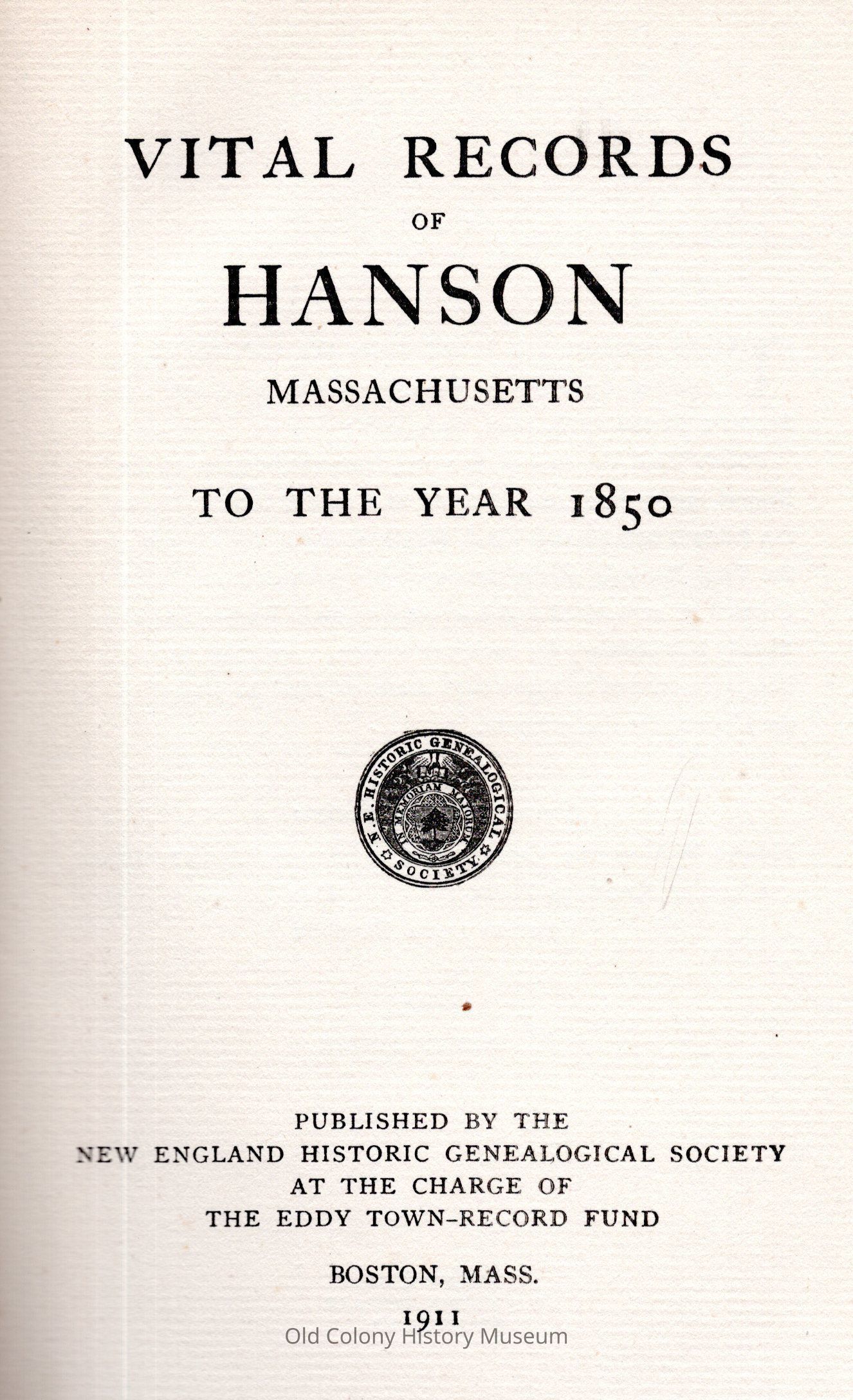 New England Historic Genealogical Society, at the charge of the Eddy town record fundPlace Published
