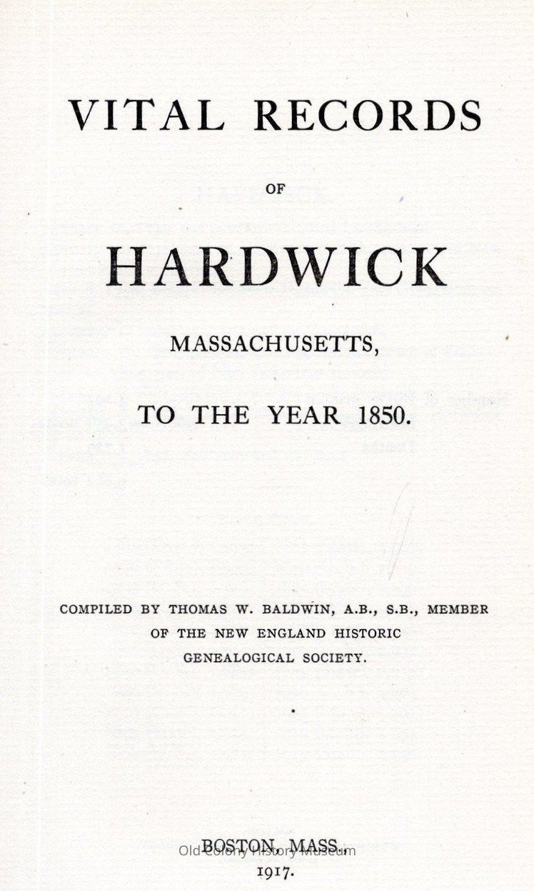 Vital Records of Hardwick, Massachusetts, to the Year 1850Entry/Object ID