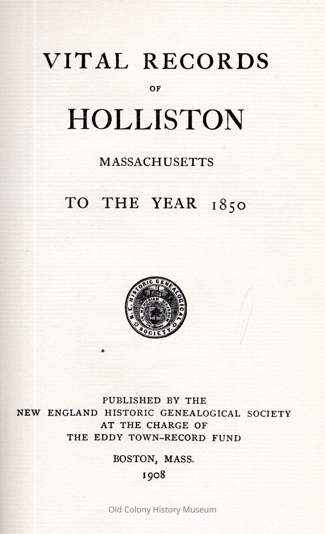 New England Historic Genealogical Society, at the charge of the Eddy town record fundPlace Published