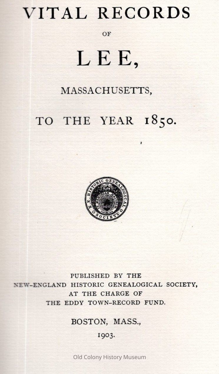 Vital Records of Lee, Massachusetts, 1777-1801, from the records of the town, Congregational church and inscriptions in the early burial grounds; all the family birth records continued beyond 1801 given as fully as recorded; containing also the baptisms and names of church members in the records of the Congregational church from its organization in 1780 to 1801Entry/Object ID