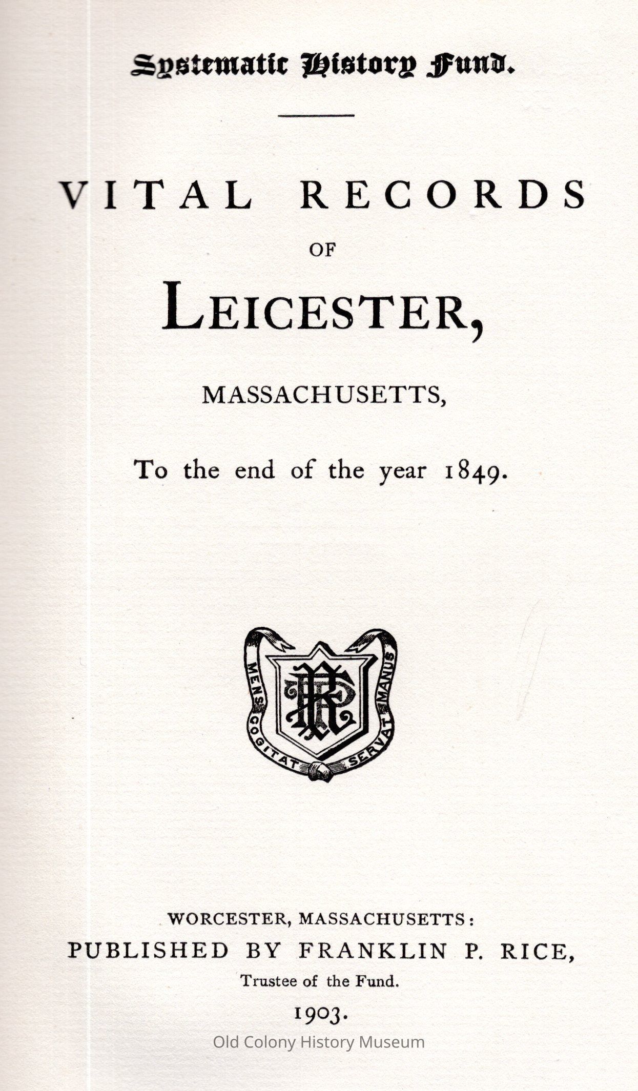 Vital Records of Leicester, Massachusetts to the End of the Year 1849.Entry/Object ID