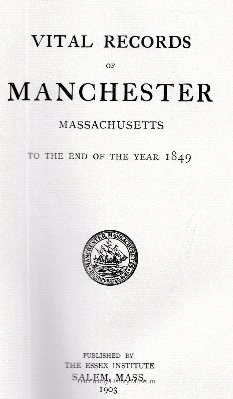 Vital Records of Manchester, Massachusetts to the End of the Year 1849.Entry/Object ID
