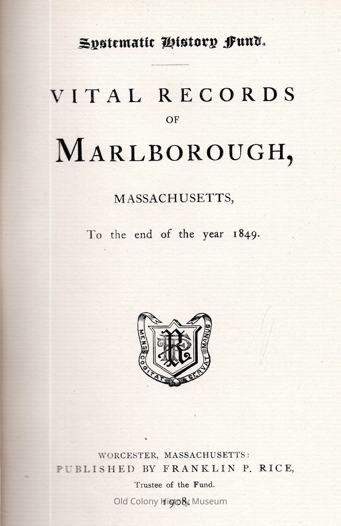 Vital Records of Marlborough, Massachusetts to the End of the Year 1849.Entry/Object ID