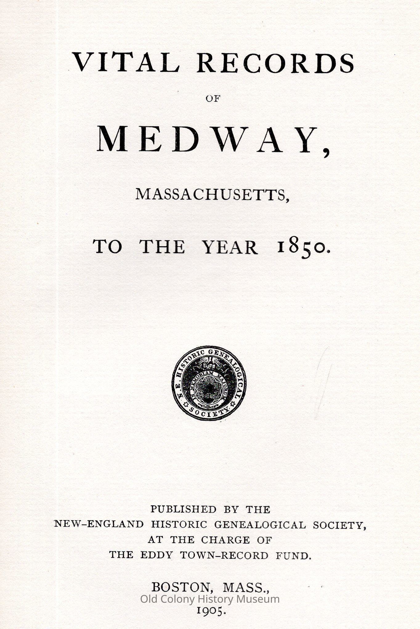 New England Historic Genealogical Society, at the charge of the Eddy town record fundPlace Published