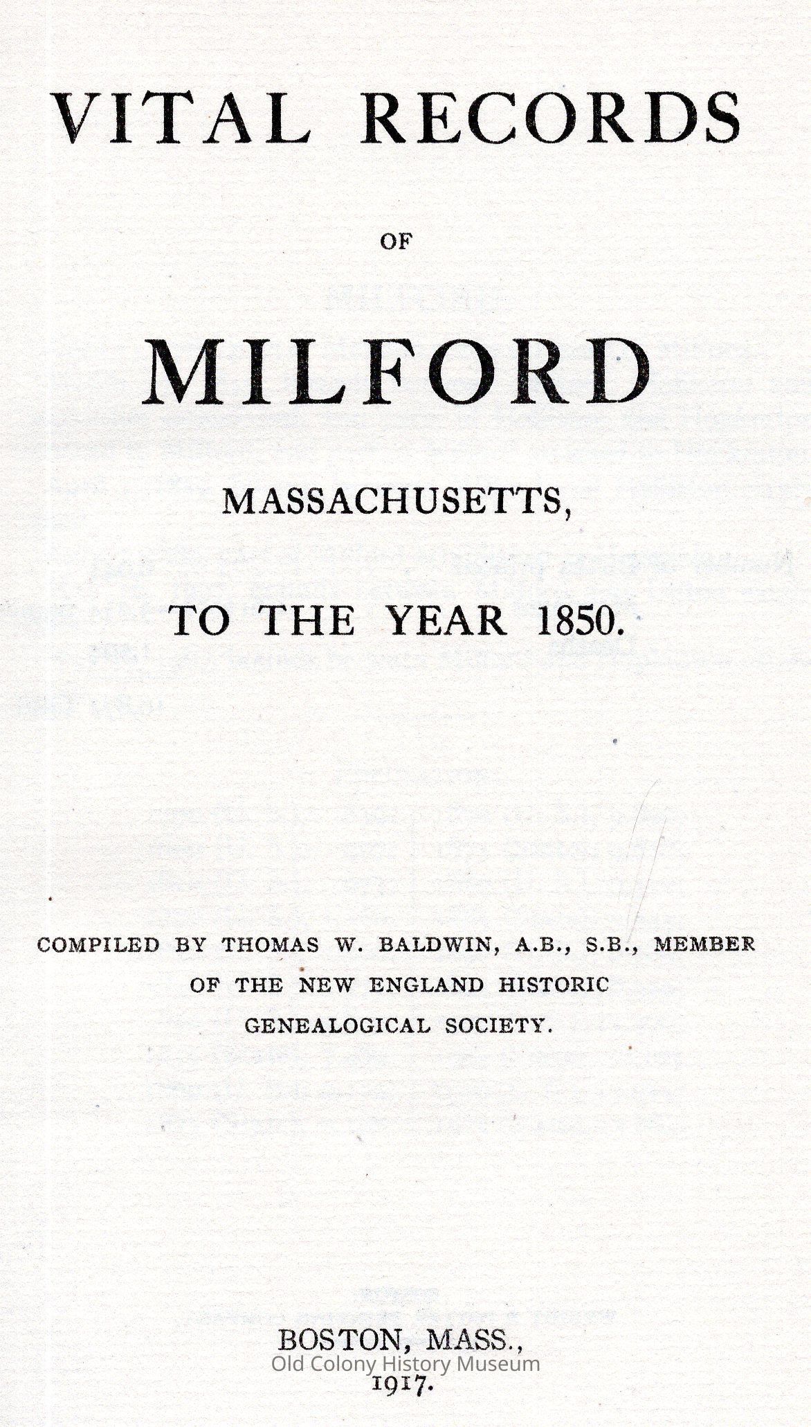 Vital Records of Milford, Massachusetts, to the Year 1850Entry/Object ID