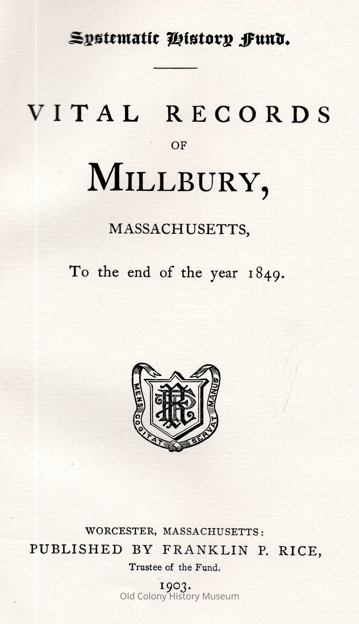 Vital Records of Millbury, Massachusetts to the End of the Year 1849.Entry/Object ID
