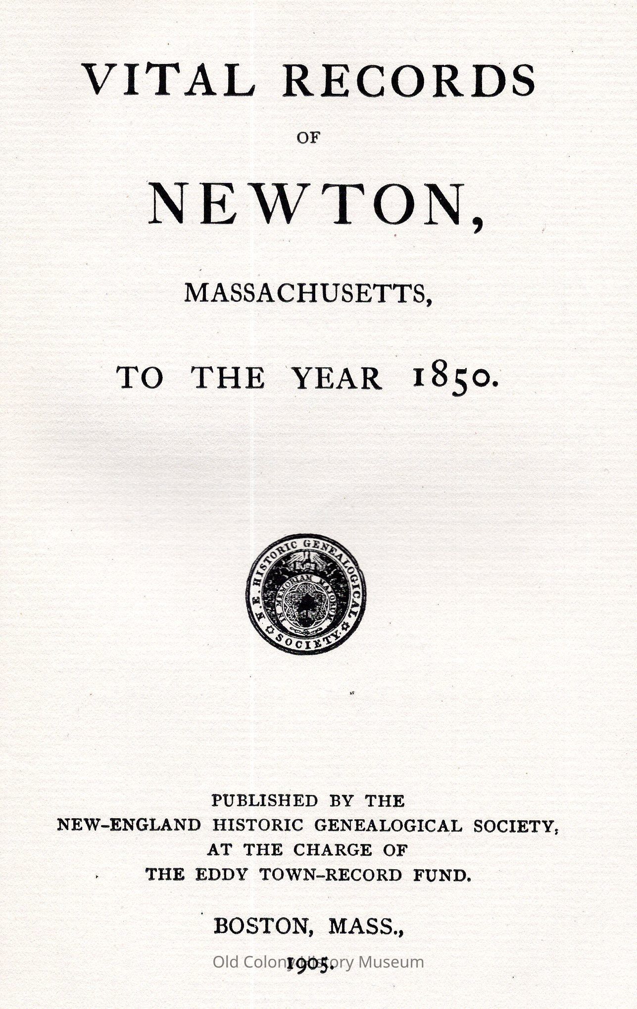 New England Historic Genealogical Society, at the charge of the Eddy town record fundPlace Published