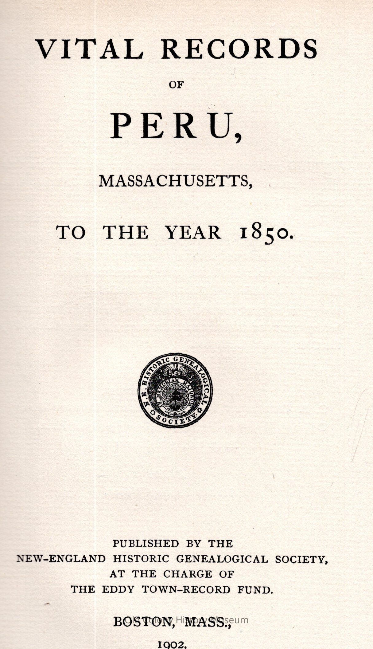 Vital Records of Peru, Massachusetts, to the Year 1850Entry/Object ID