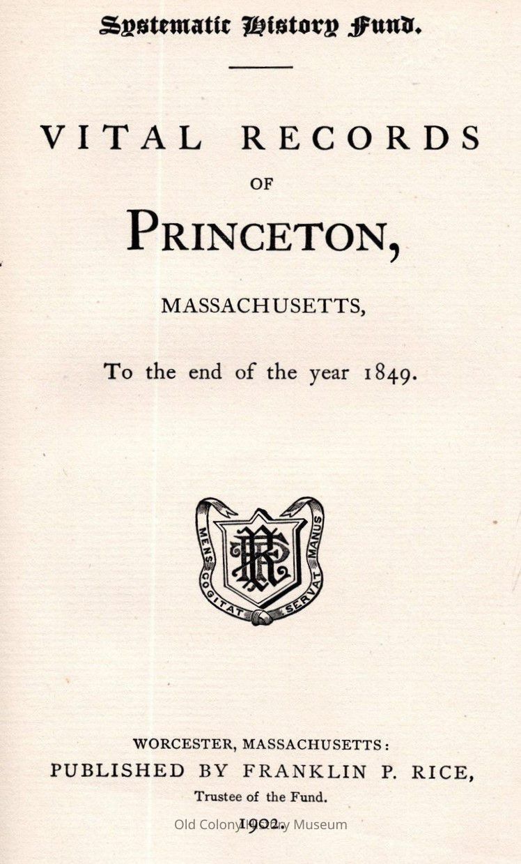 Vital Records of Princeton, Massachusetts to the End of the Year 1849.Entry/Object ID