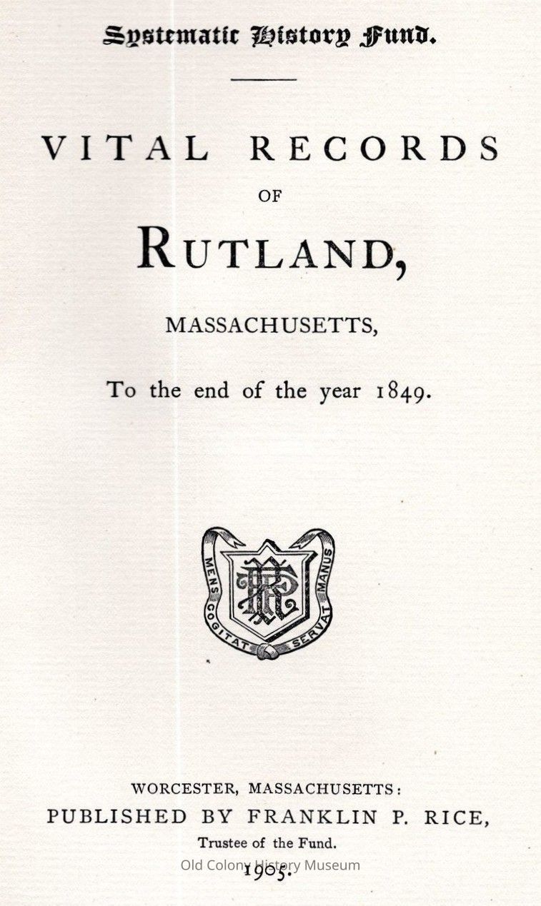 1. Registers of births, etc.--Rutland, Mass.Book Details