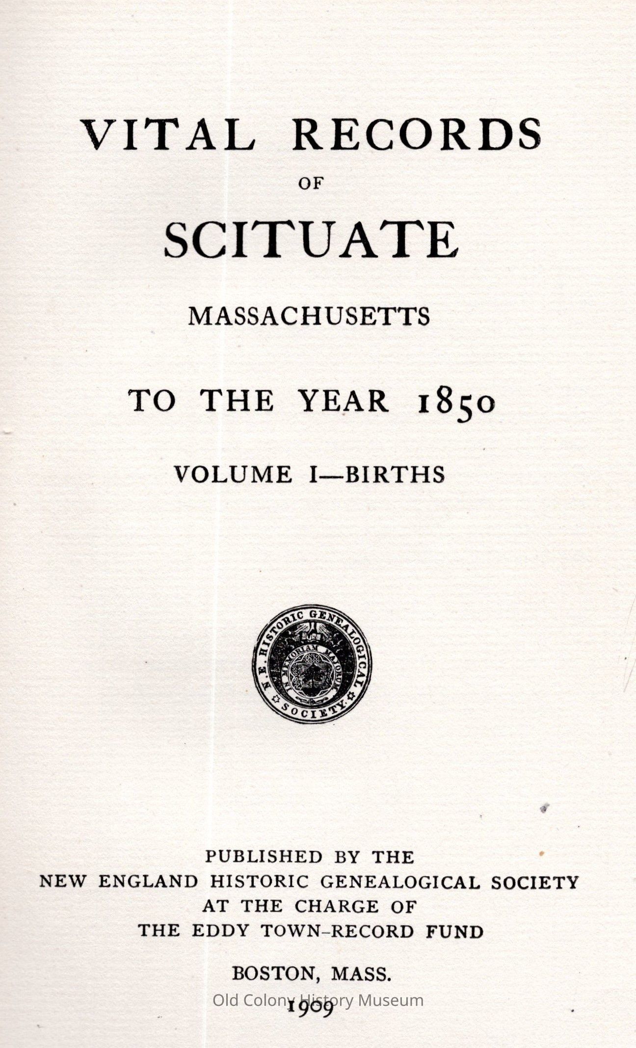 New England Historic Genealogical Society, at the charge of the Eddy town record fundPlace Published
