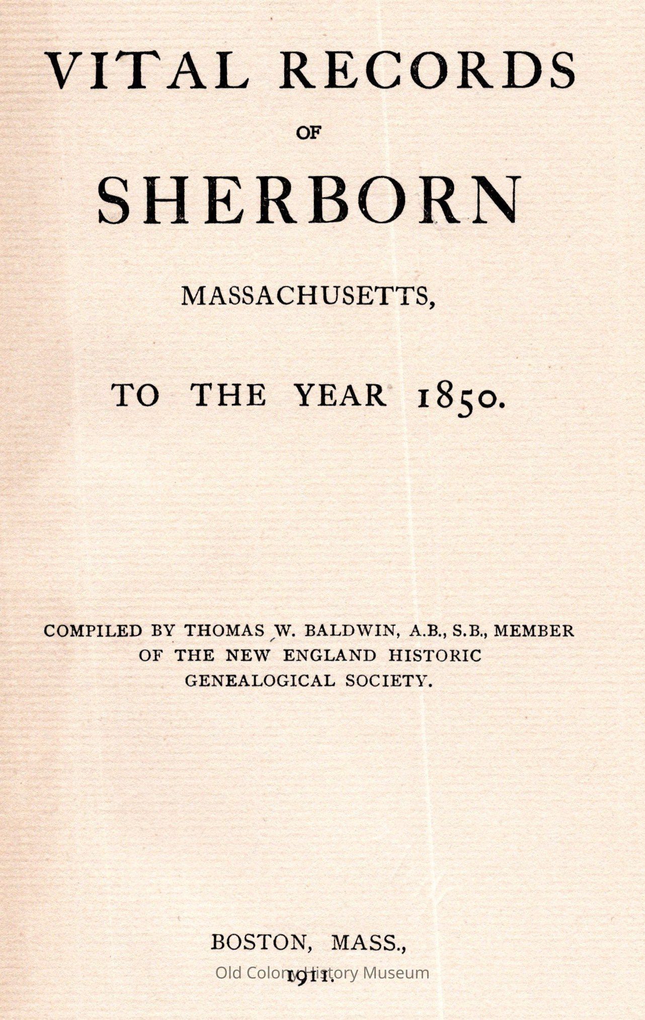 Vital Records of Sherborn, Massachusetts, To The Year 1850Entry/Object ID