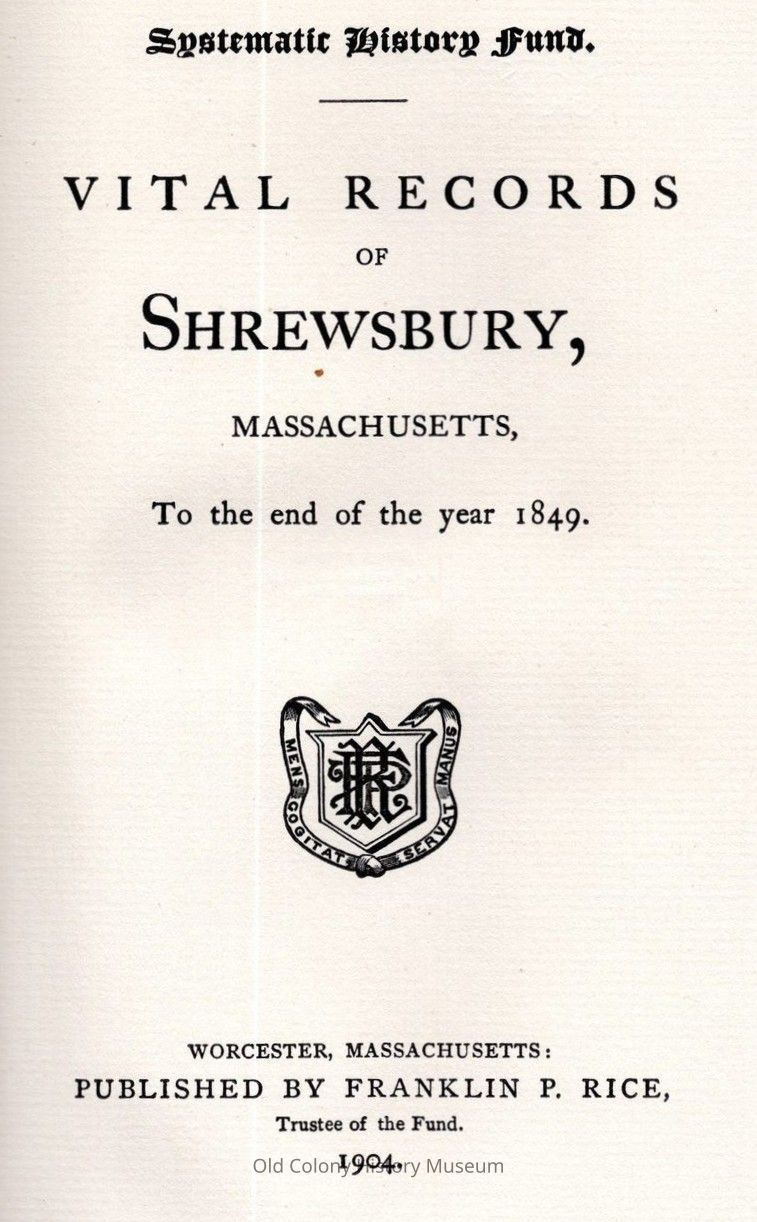 Vital Records of Shrewbury, Massachusetts To The End Of The Year 1849Entry/Object ID