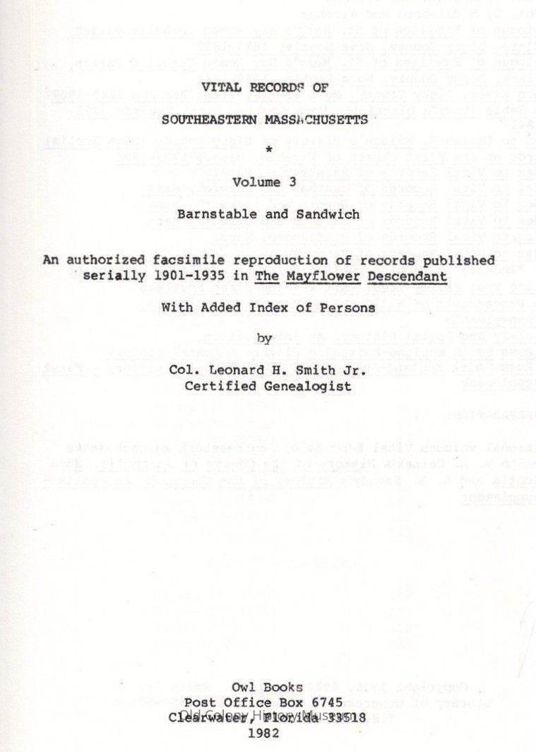 Vital Records of Southeastern Massachusetts: An Authorized Facsimile Reproduction of Records Published Serially 1901-1935 in The Mayflower Descendant