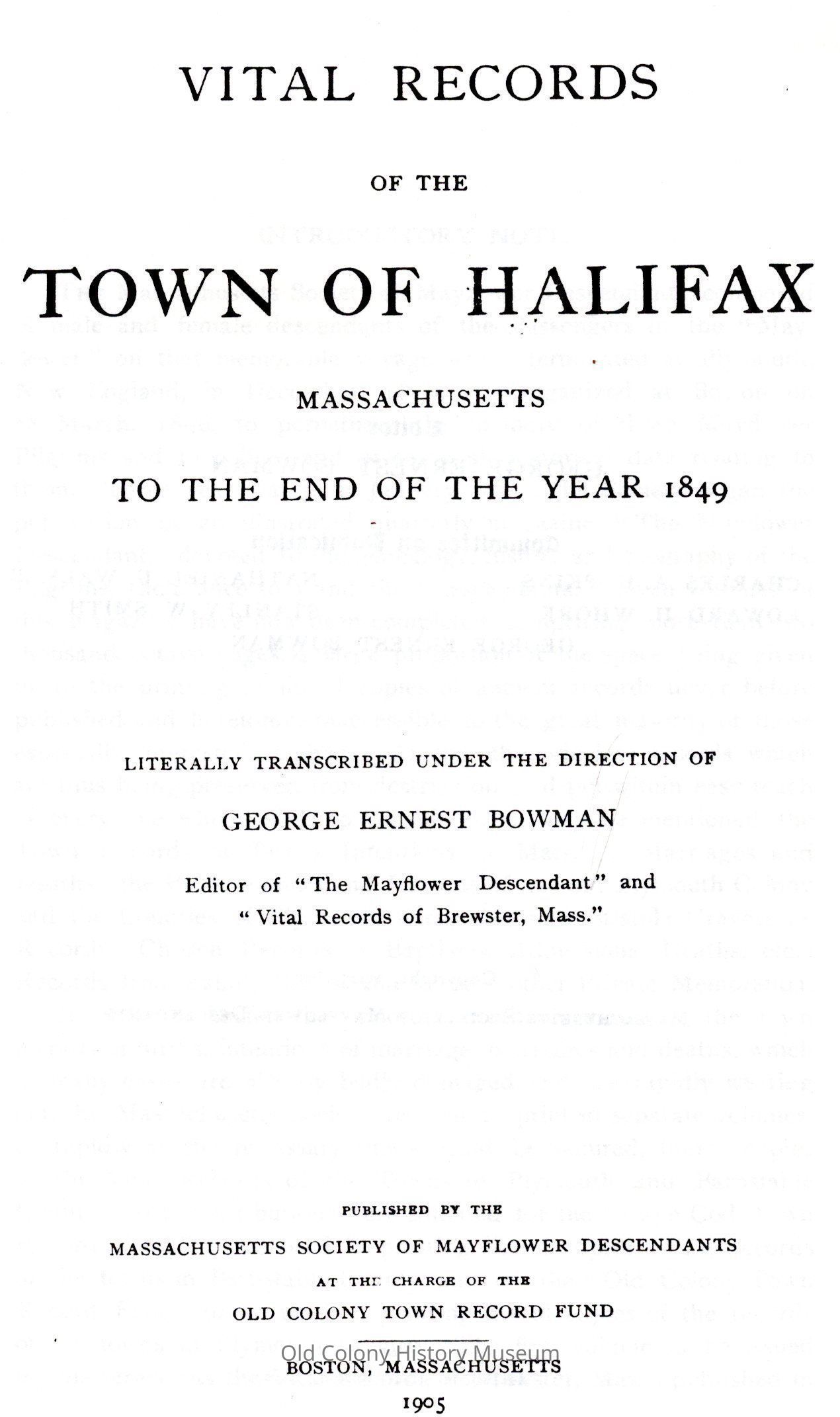 Vital Records of the Town of Halifax, Massachusetts To The End Of The Year 1849Entry/Object ID