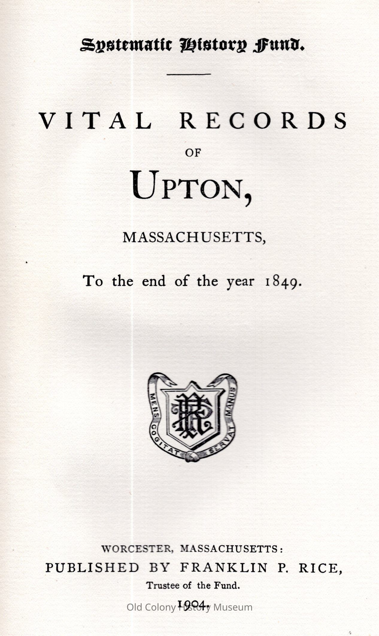 Vital Records of Upton, Massachusetts To The End Of The Year 1849Entry/Object ID