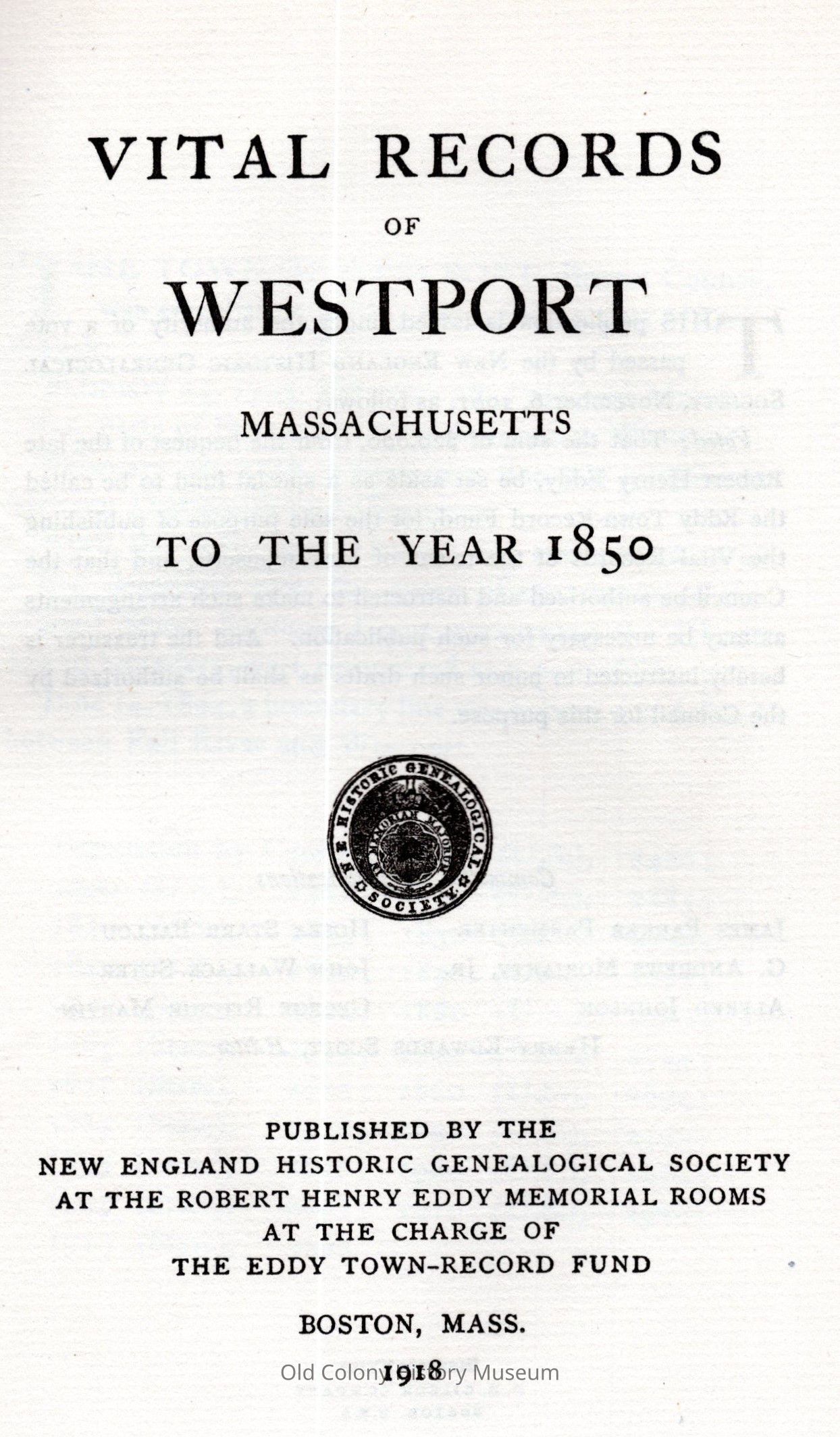 New England Historic Genealogical Society, at the charge of the Eddy town record fundPlace Published