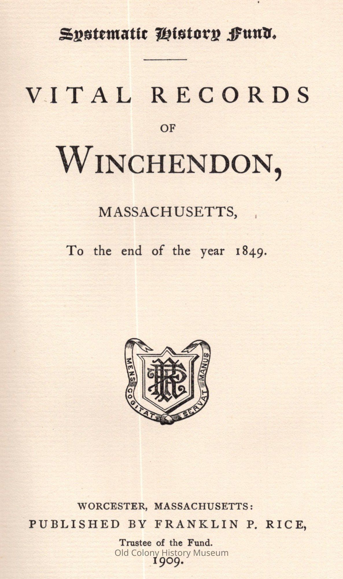 Vital Records of Winchendon, Massachusetts To The End Of The Year 1849Entry/Object ID