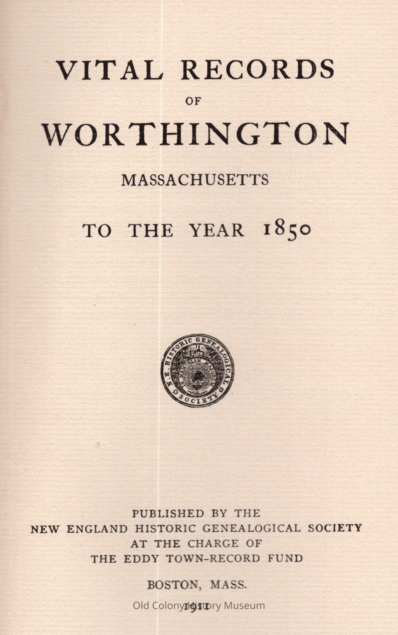 New England Historic Genealogical Society, at the charge of the Eddy town record fundPlace Published