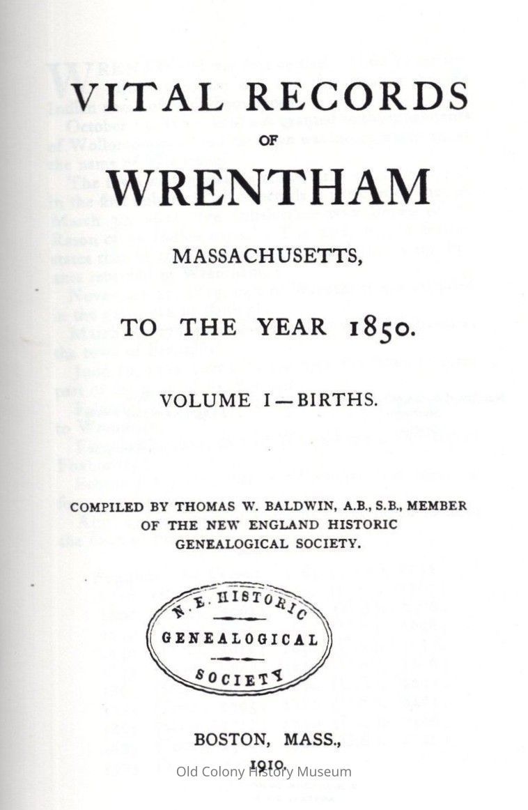 1. Registers of births, etc.--Wrentham, Mass.Book Details