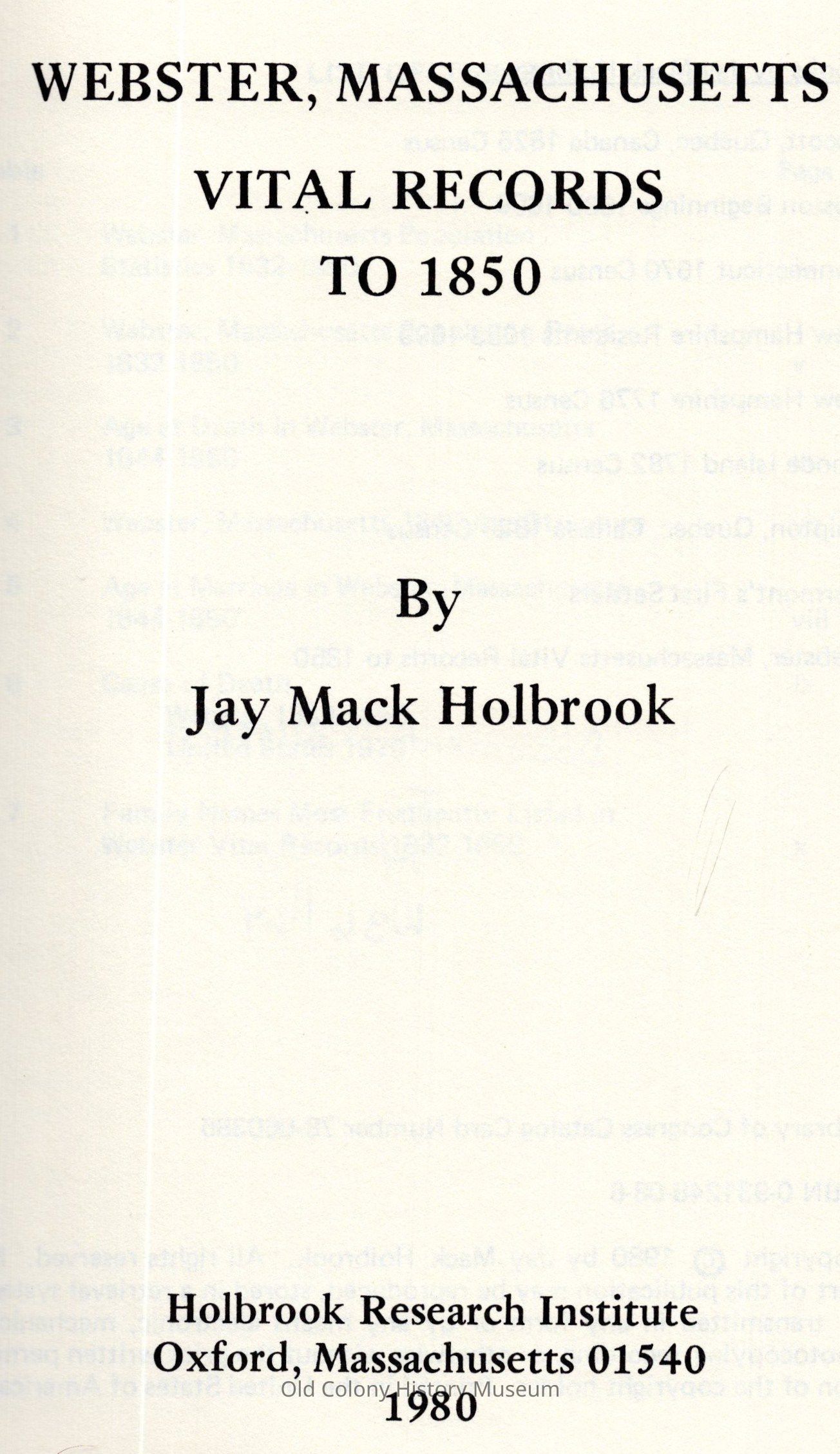 1. Webster, Mass.--Genealogy. 2. Registers of births, etc.,--Massachusetts--Webster.Book Details