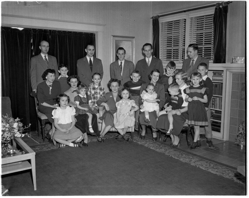 Negative, sheet film. 4 x 5 b&w. No. 2654. Family photo at Winifred Schmidt's home.