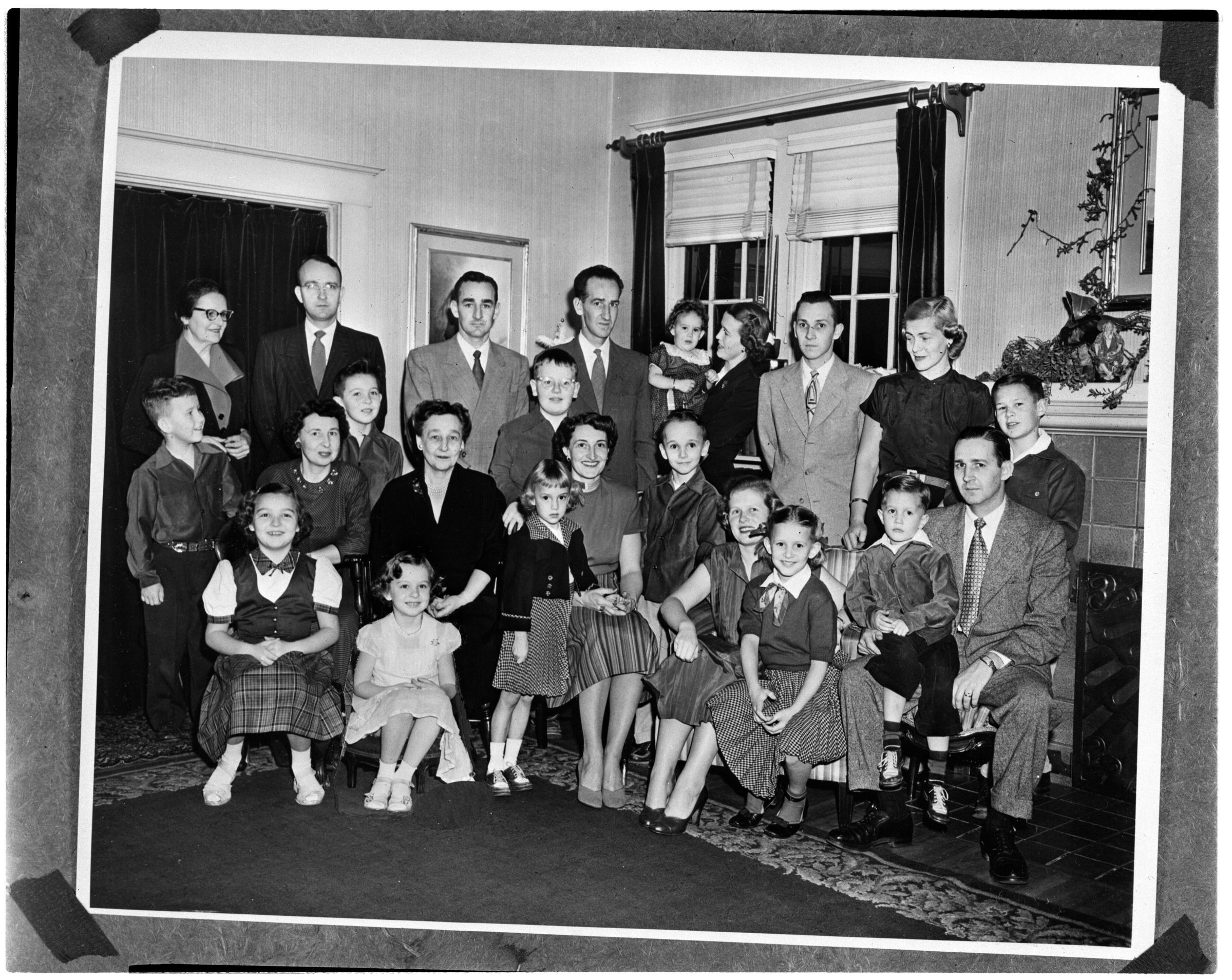 Negative, sheet film. 4 x 5 b&w. No. 2654. Family photo at Winifred Schmidt's home