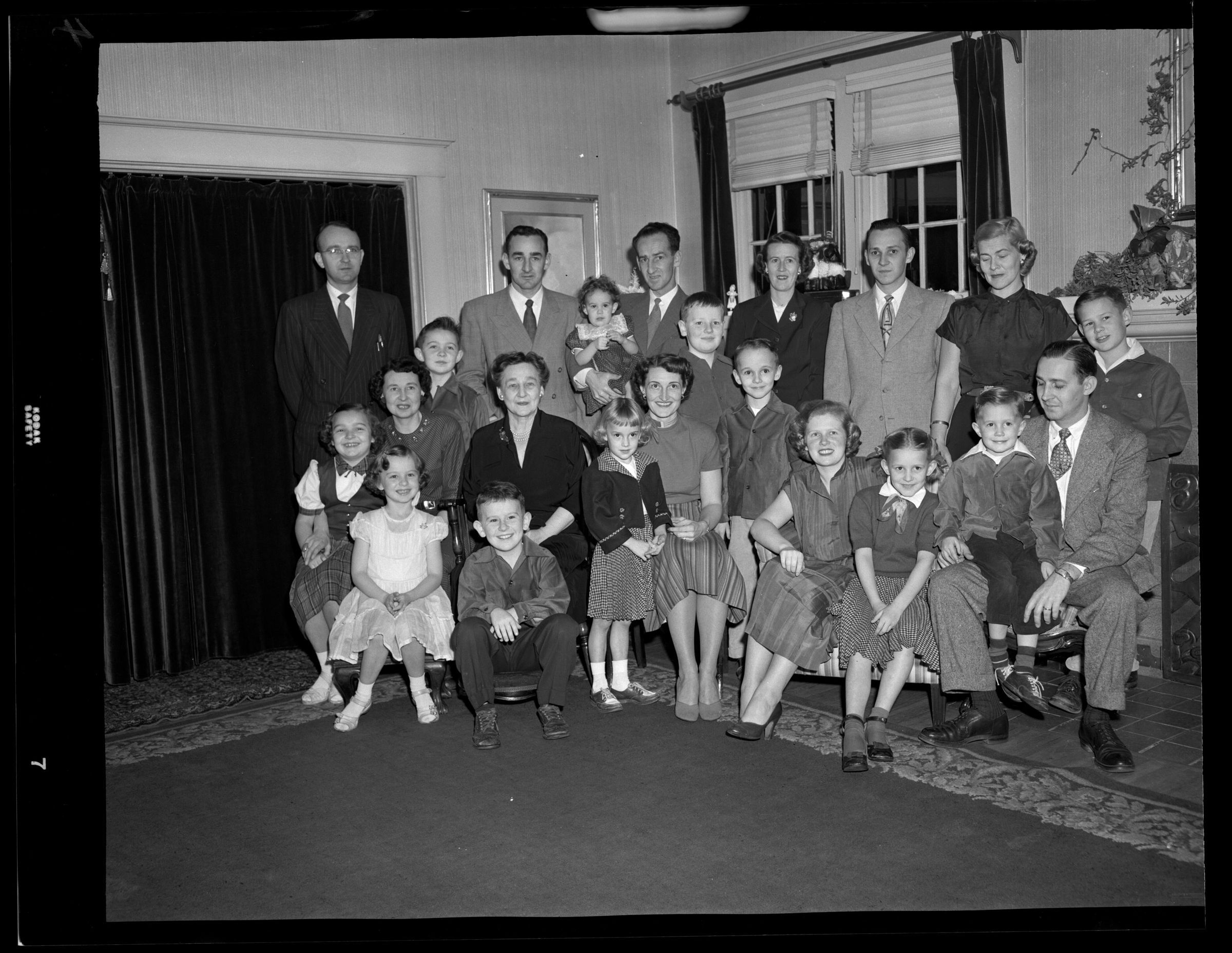 Negative, sheet film. 4 x 5 b&w. No. 2654. Family photo at Winifred Schmidt's home.