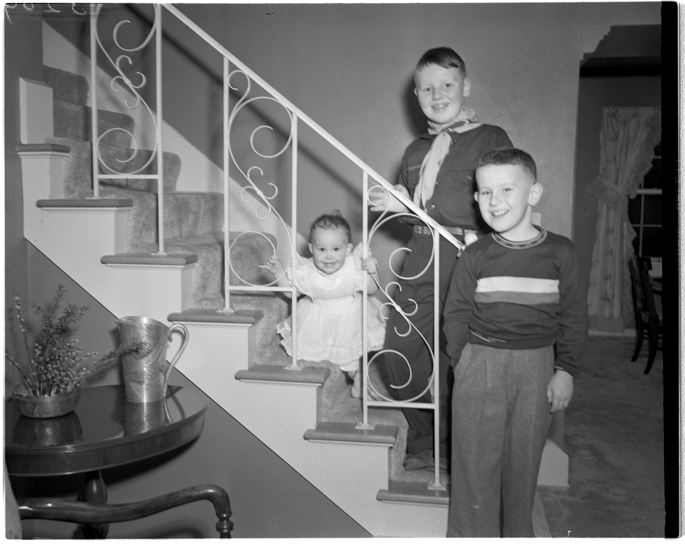 Negative, sheet film. 4 x 5 b&w. No. 655. Susan, Rick, and Michael, children of Bump Schmidt.