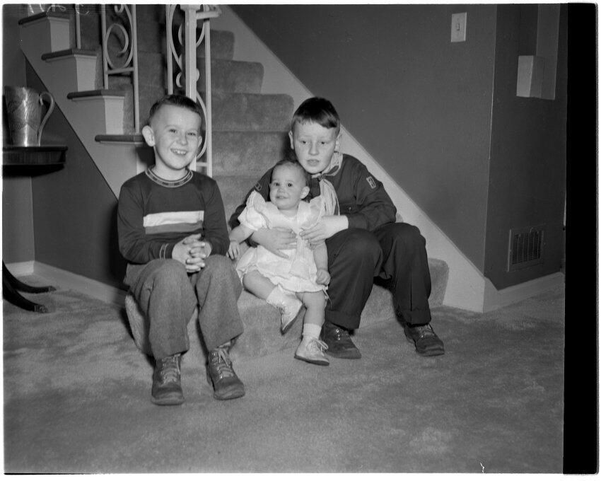 Negative, sheet film. 4 x 5 b&w. No. 655. Michael, Susan, and Rick, children of Bump Schmidt.
