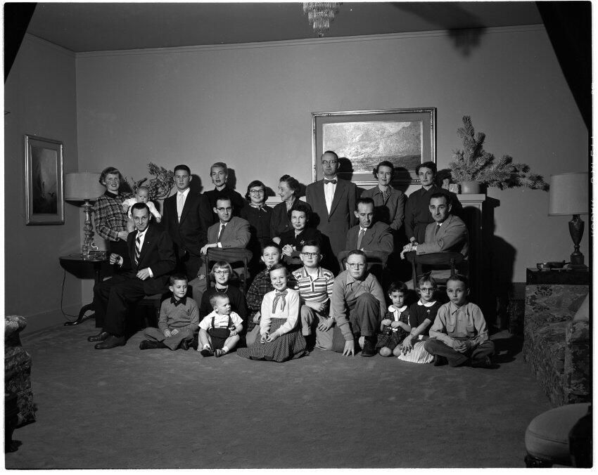 Negative, sheet film. 4 x 5 b&w. No. 1-8. Christmas party at Winifred Schmidt's house.