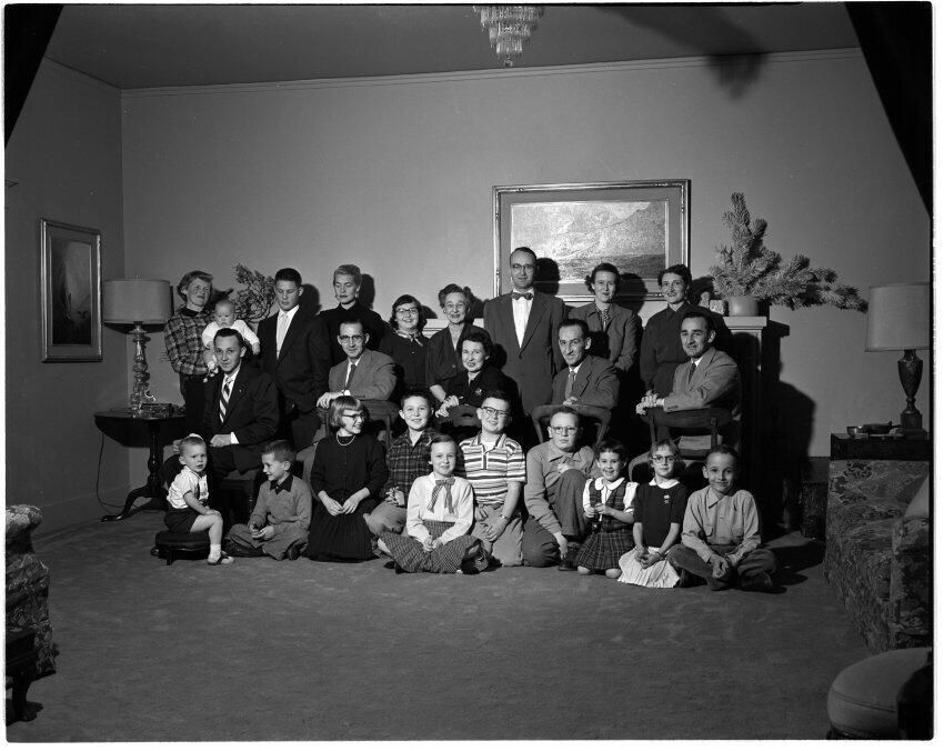 Negative, sheet film. 4 x 5 b&w. No. 1-8. Christmas party at Winifred Schmidt's house.