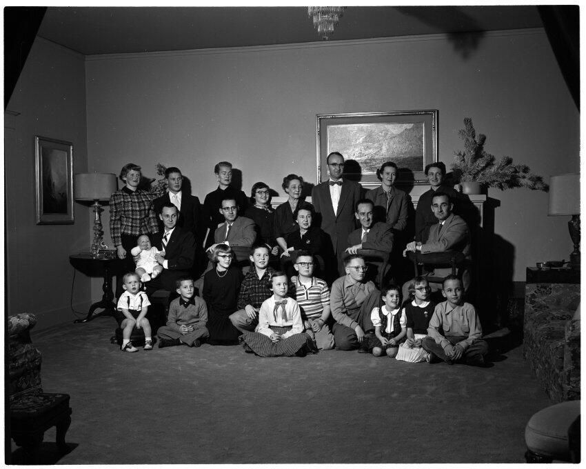 Negative, sheet film. 4 x 5 b&w. No. 1-8. Christmas party at Winifred Schmidt's house.