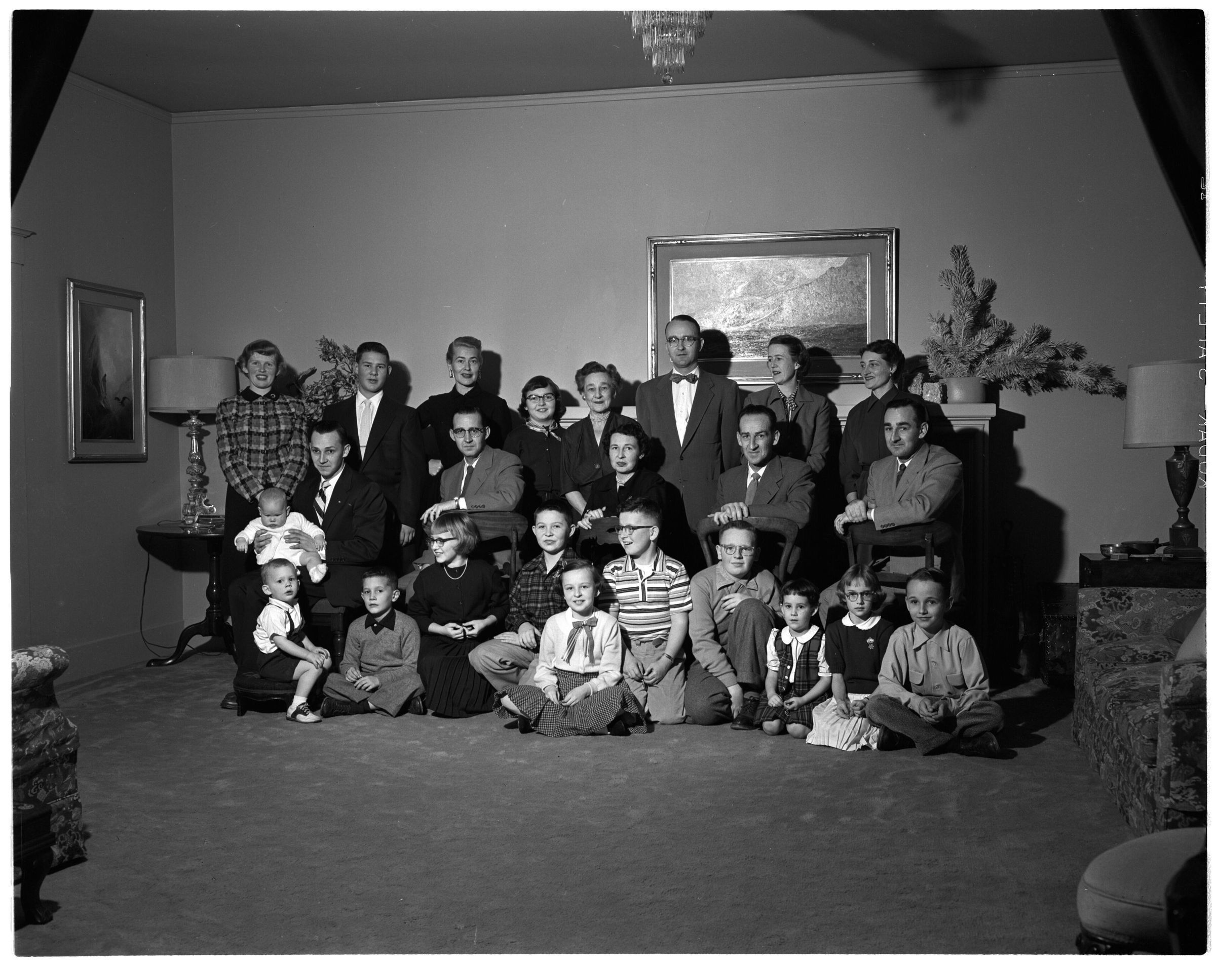 Negative, sheet film. 4 x 5 b&w. No. 1-8. Christmas party at Winifred Schmidt's house.