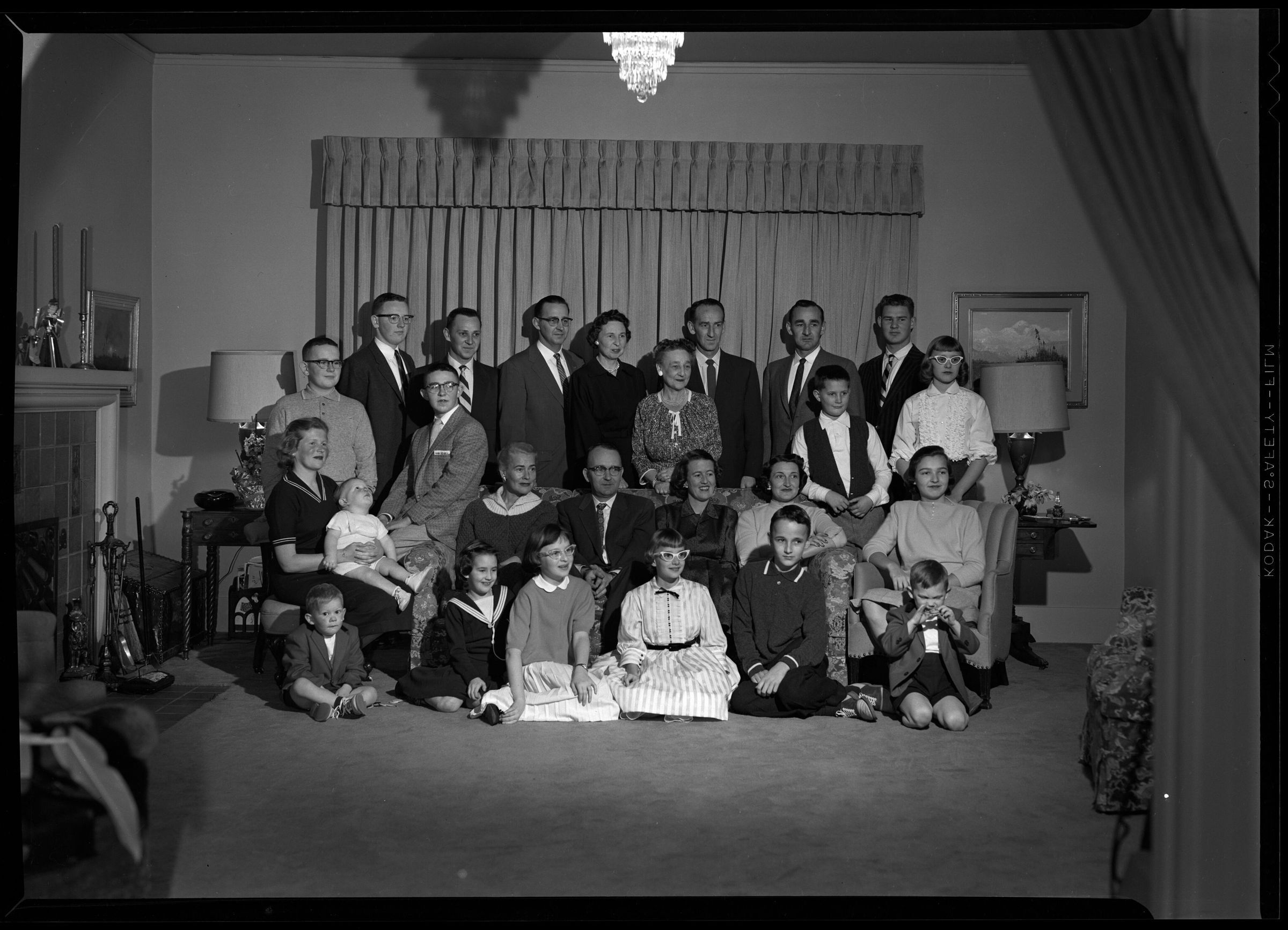 Negative, sheet film. 5 x 7 b&w. No. K850. Family photo at Winifred Schmidt's home.