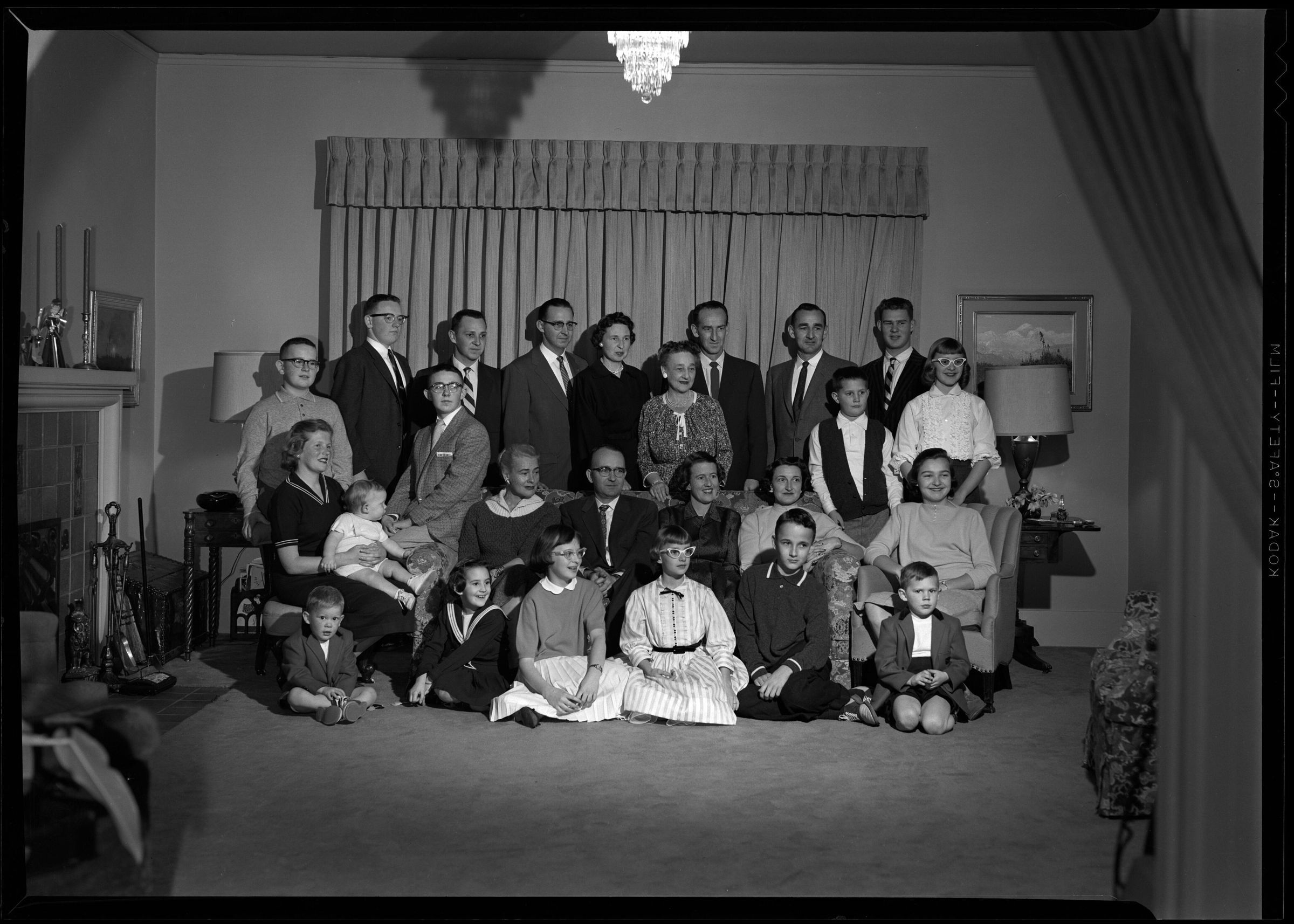 Negative, sheet film. 5 x 7 b&w. No. K850. Family photo at Winifred Schmidt's home.