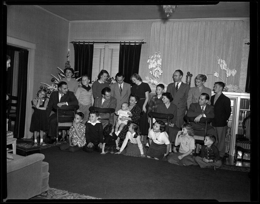 Negative, sheet film. 4 x 5 b&w. No. G951. Family photo at Winifred Schmidt's house.