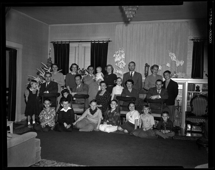 Negative, sheet film. 4 x 5 b&w. No. G951. Family photo at Winifred Schmidt's house.