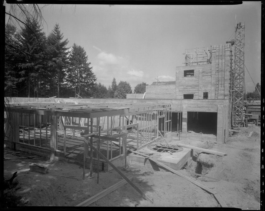 Negative, sheet film. 8 x 10 b&w. No. E438. Olympia brewery construction.