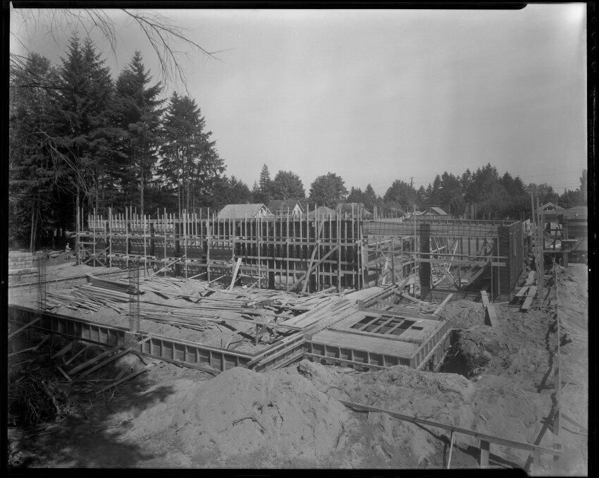 Negative, sheet film. 8 x 10 b&w. No. E443. Olympia brewery construction.