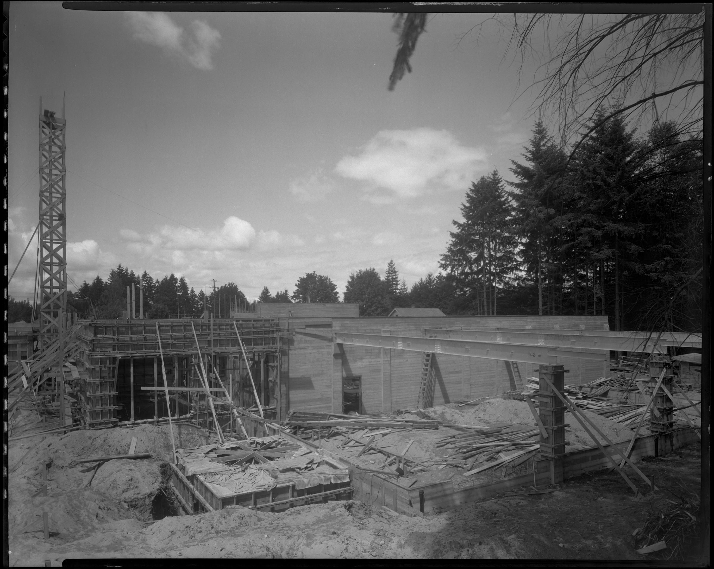 Negative, sheet film. 8 x 10 b&w. No. E445. Olympia brewery construction.