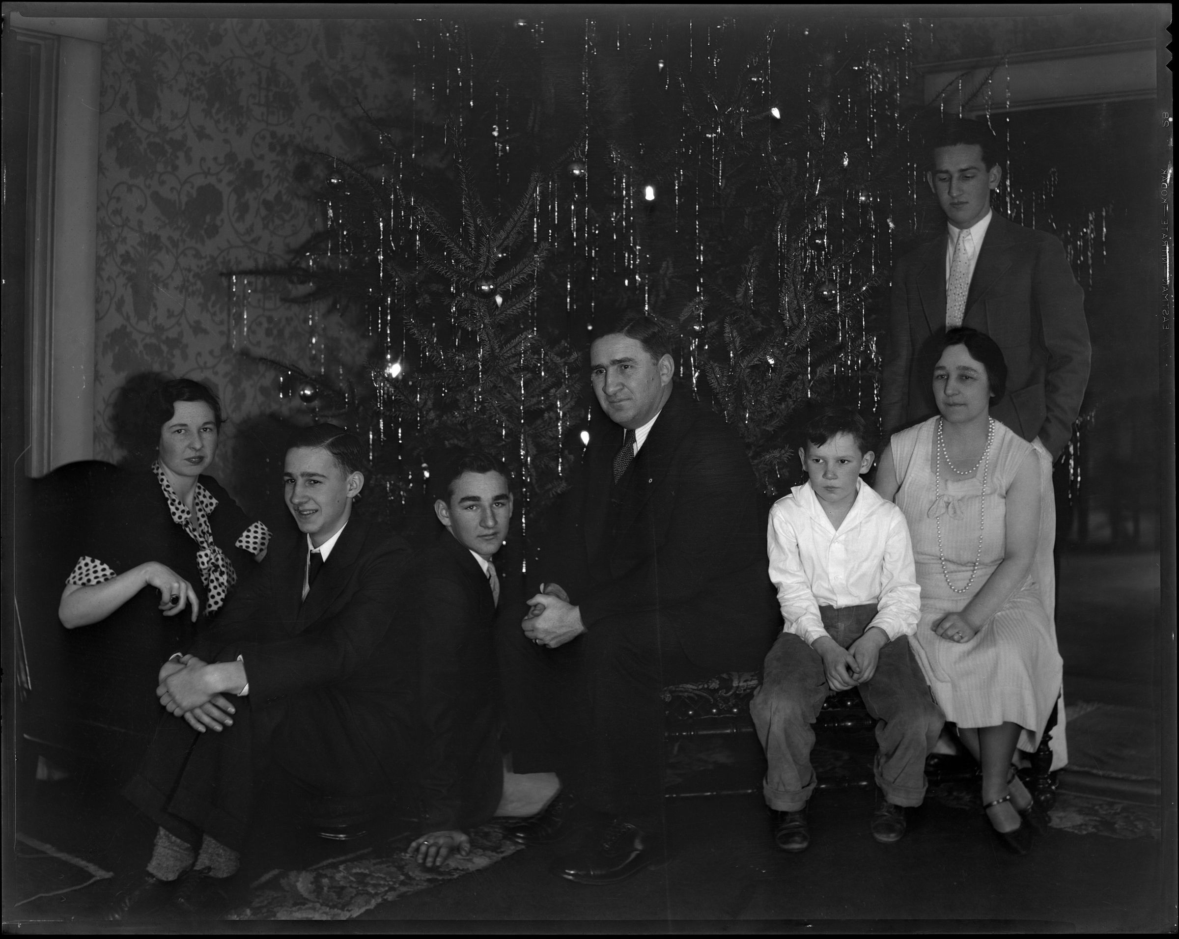 Negative, sheet film. 8 x 10 b&w. Ky, Bobby, Bink, Adolph, Skip, Winifred, and Bump Schmidt.