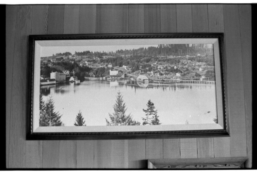 Negative, sheet film. 1 x 1.5 b&w. Oly Brew. Framed photo inventory. Tumwater, about 1904. Olympia Brewery at far left. Crosby's Lincoln flour mill is tall white building just left of center. Long bridge to Olympia is at right.Other Names and Numbers
