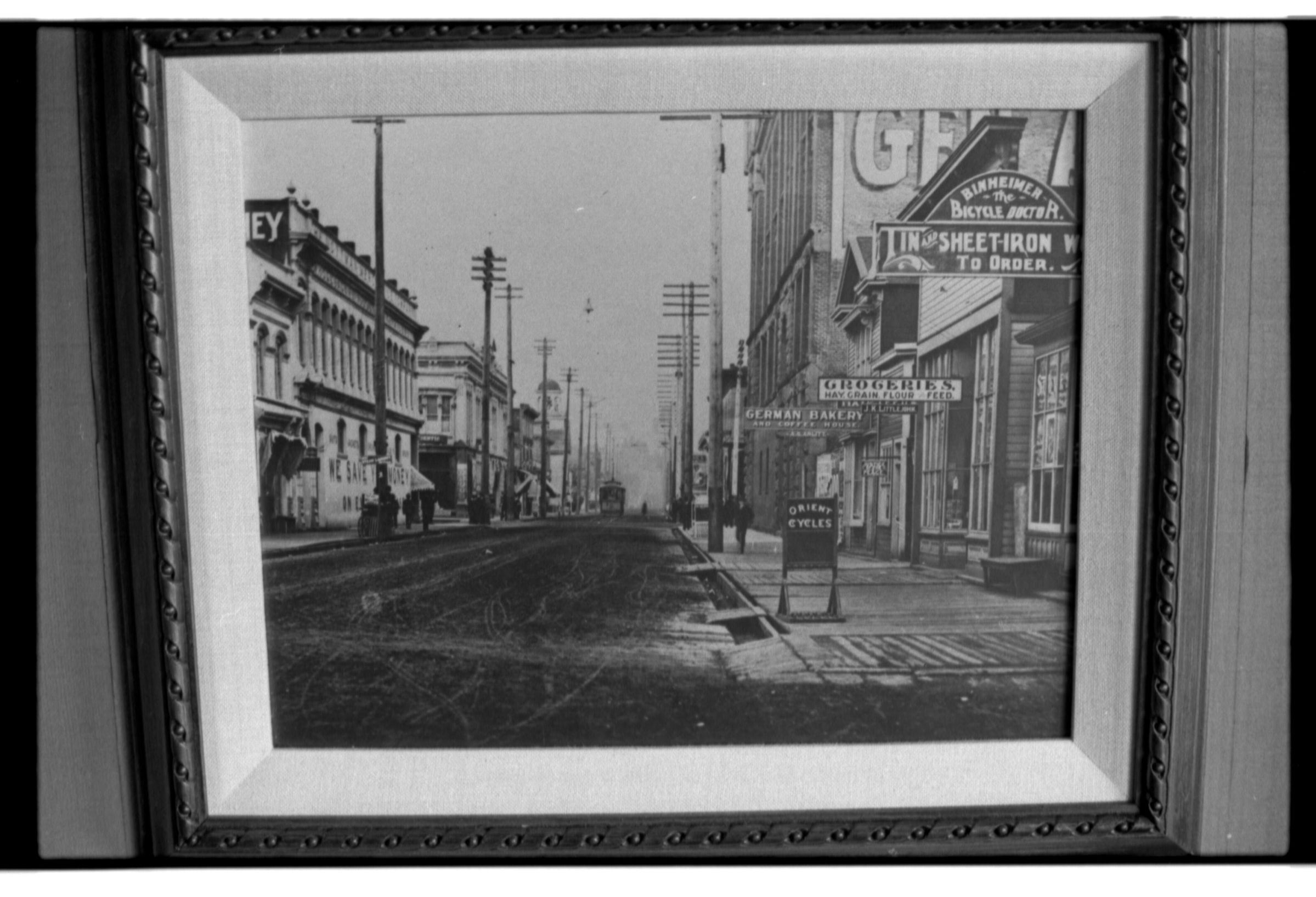 Negative, sheet film. 1 x 1.5 b&w. Oly Brew. Framed photo inventory. Downtown Olympia.