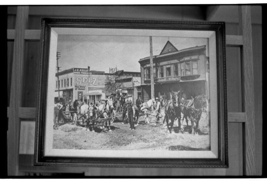 Negative, sheet film. 1 x 1.5 b&w. Oly Brew. Framed photo inventory. Roadwork in downtown Olympia.